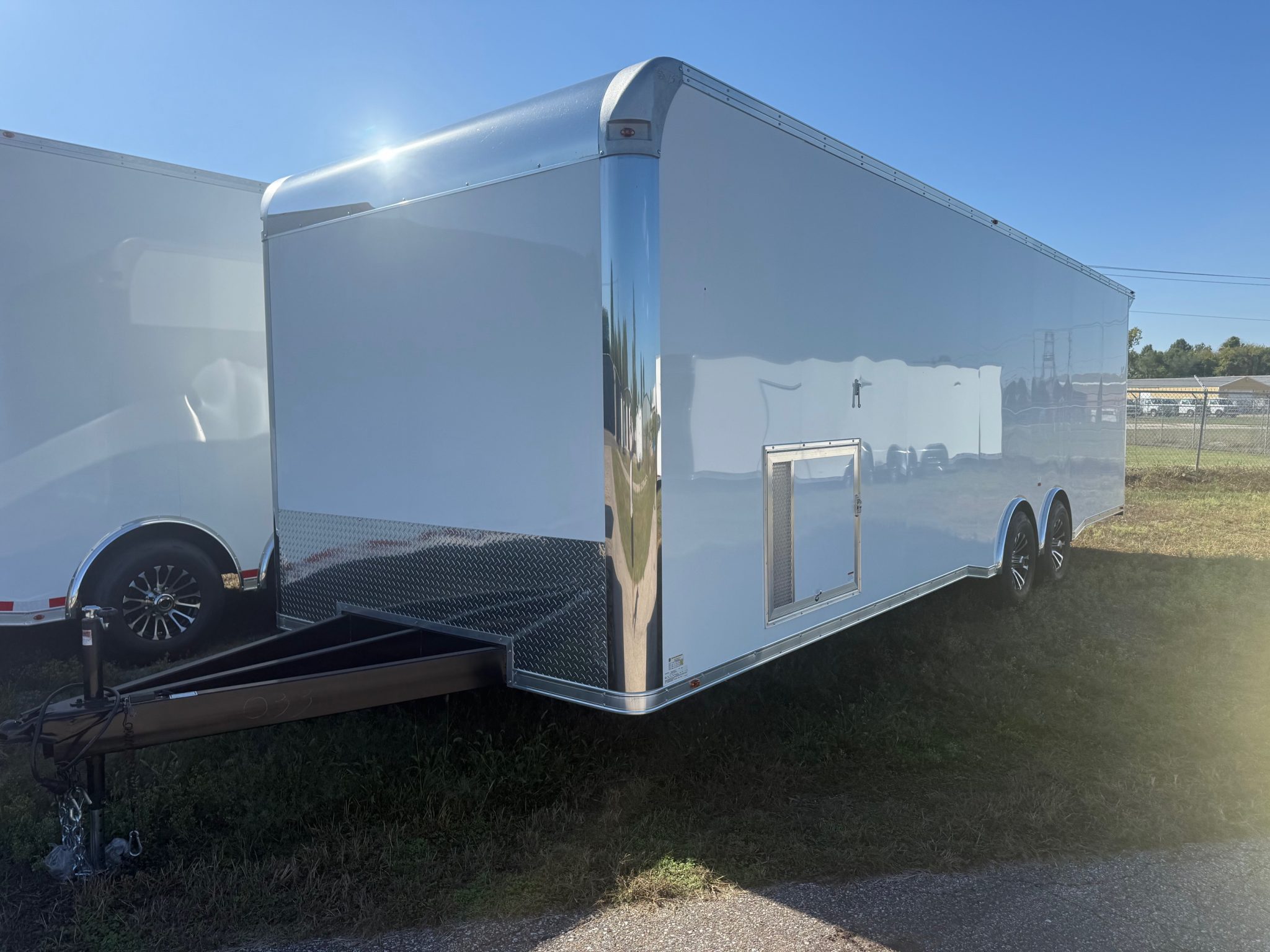 We also stock enclosed car trailers. As the name suggests, these trailers are fully enclosed to offer additional security. They may be simple structures intended only to transport and protect your car, or they may contain living quarters and other amenities.